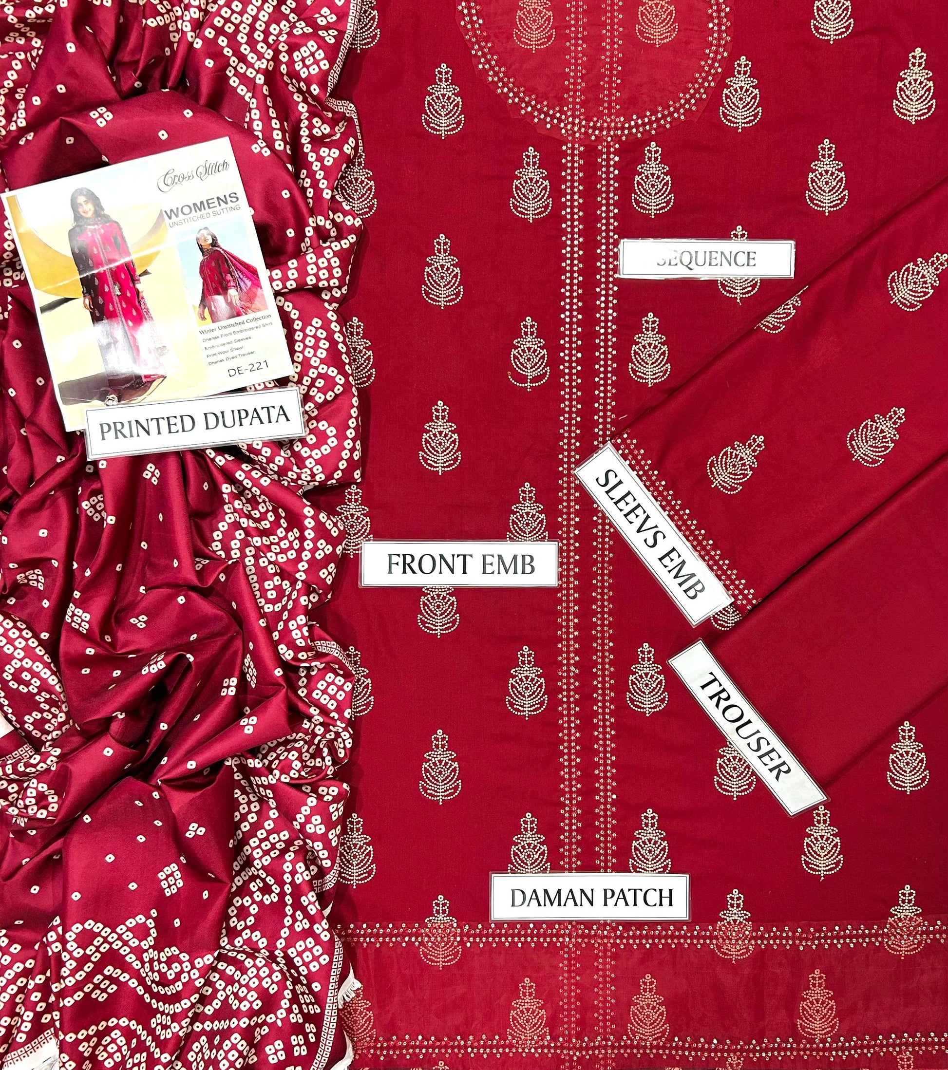 ● Unstitched Winter Collection Dhanak Stuff 3 Piece Full Embroidered Suit With Wool Shawl.